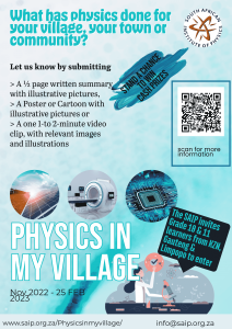 The SAIP invites grade 10 & 11 learners from KZN, Gauteng & Limpopo to participate in the Physics In My Village competitions for 2022 -23